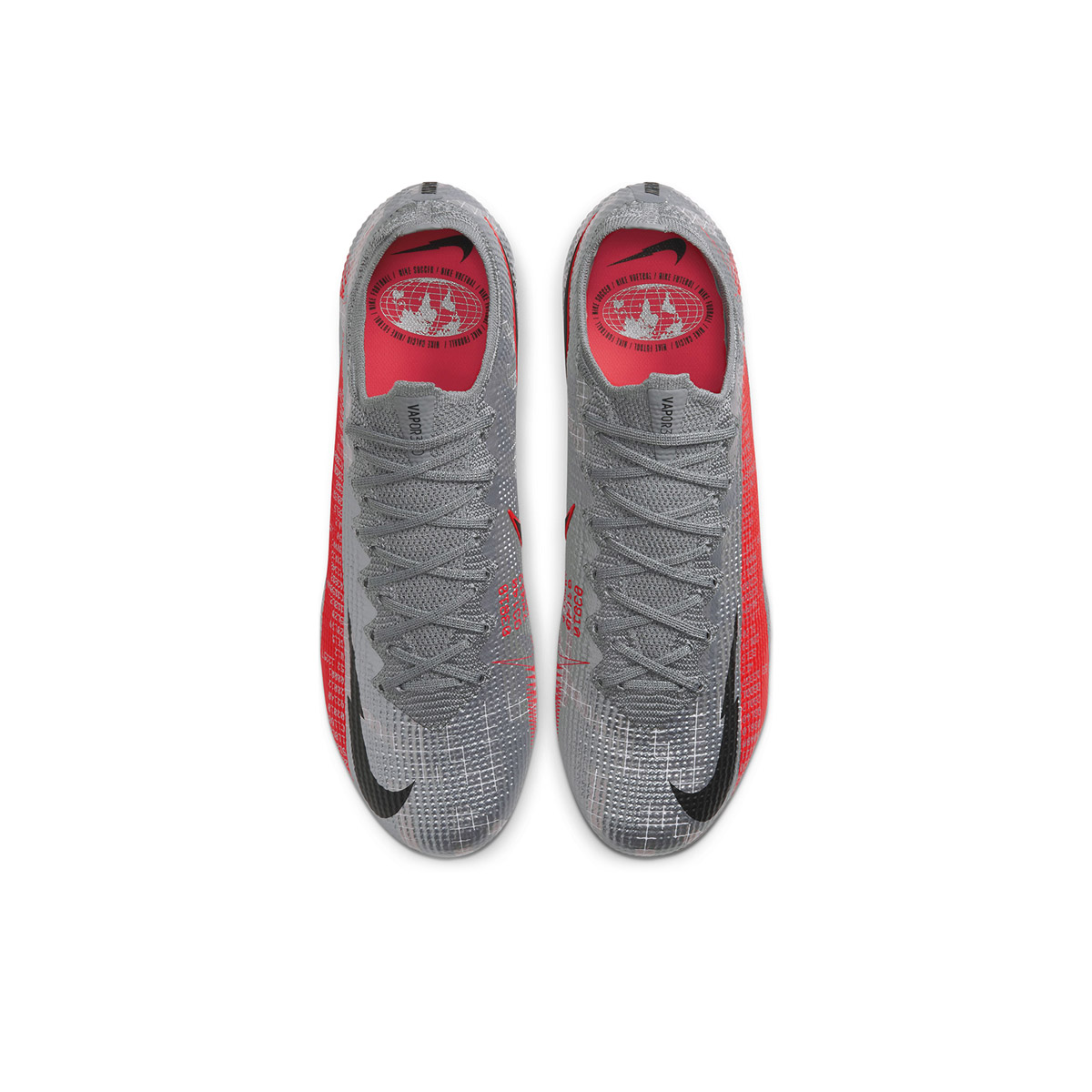 Los botines Nike Mercurial Vapor 13 Elite FG agregan una zona Nike Aerowtrac en el antepié y un chasis ligeramente más rígido para ayudar a potenciar la tracción. En el interior poseen una plantilla con tecnología NikeGrip que proporciona la máxima tracción interior bajo los pies, para una amortiguación más ligera. Inspirados en las innovaciones que el Vapor 12 introdujo con el Flyknit de 360 grados para envolver tu piel para un mayor ajuste, además del nuevo hilo de alta tenacidad y el forro de una sola pieza que crean una sensación cerrada y segura mientras jugas. La tecnología ACC (All Condition Control) significa que tendrás un toque confiable tanto en condiciones húmedas como secas, mientras que la superposición de NikeSkin ultradelgada hace que sientas la pelota con una mayor precisión para pases a máxima velocidad. Hechos para césped seco y húmedo.