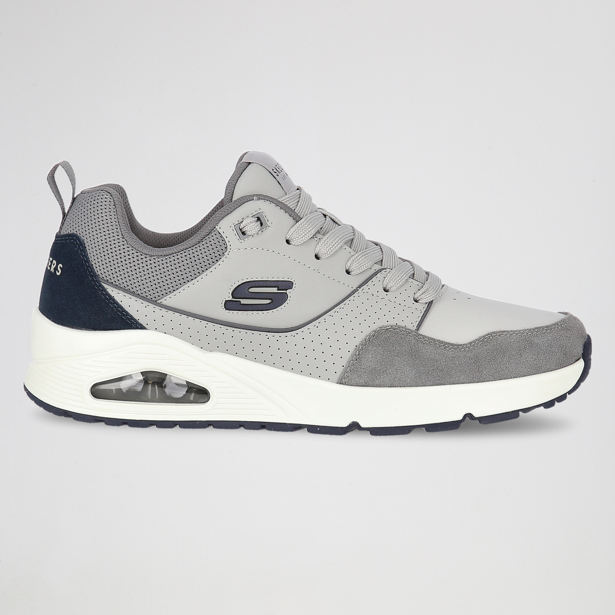 Las Zapatillas Skechers Uno Retro One para hombre combinan un diseño clásico con tecnologías modernas. Cuentan con una cámara de aire visible en la entresuela que ofrece una amortiguación óptima, y una plantilla Air-Cooled Memory Foam que proporciona frescura y comodidad durante todo el día. Su estética atemporal las hace perfectas para cualquier ocasión.